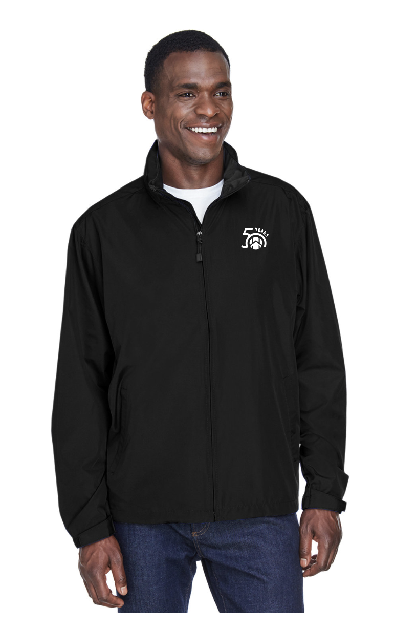 sku: HAH-INV-MTechnoJacket50Celebrating 50 years of Help At Home! The Mens North End Techno Lite Jacket is 100% 240T Polyester with water resistant finish. Lined with 100% poyester mesh in upper back. Features a roll-awy hood, vented back yoke, adjustable cuffs with tabs, and adustable shock cord at hood and hem. Embroidered with the Help At Home 50 Year Anniversary icon.
