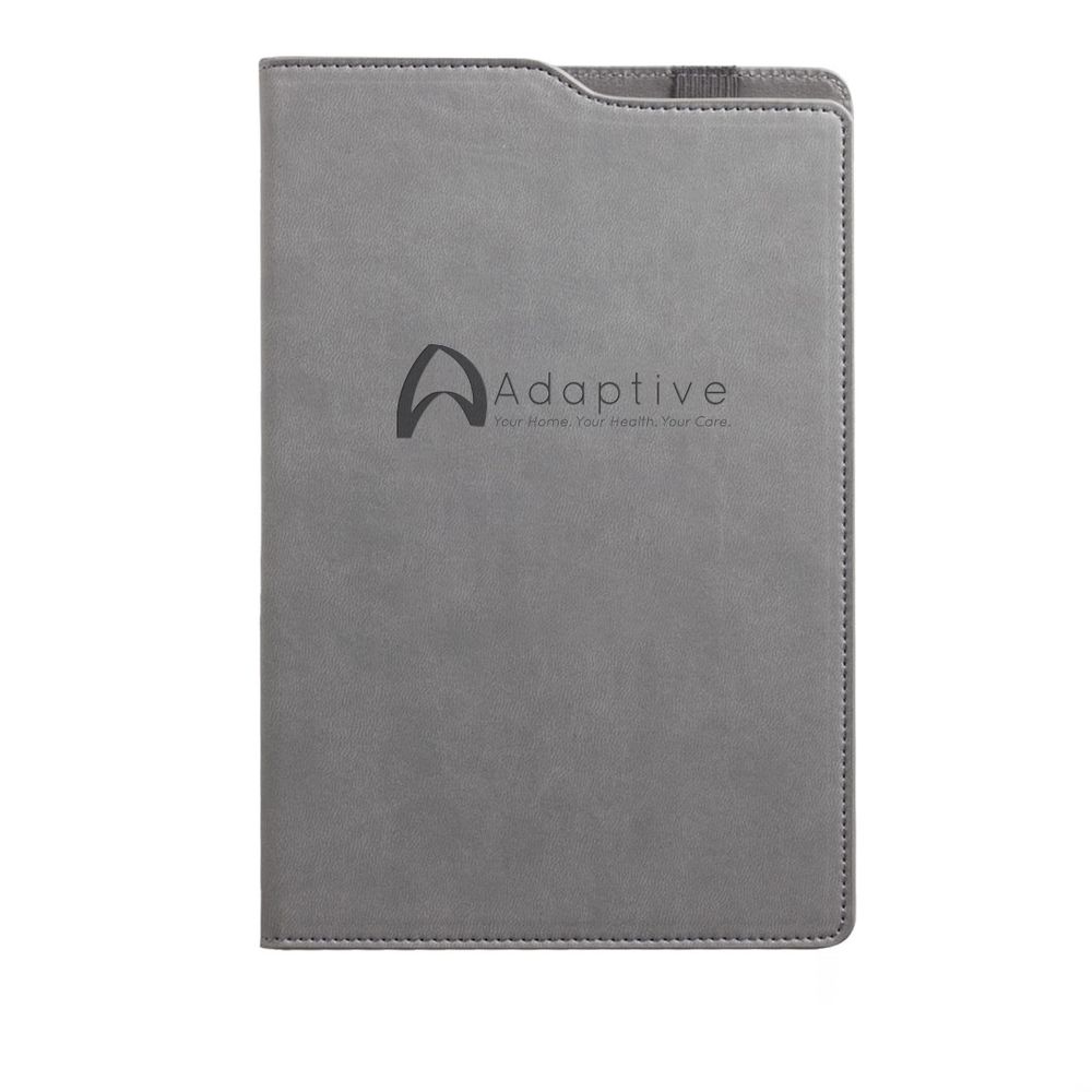 sku: ADA-INV-BC412A modern twist on the classic thinker's journal. A reliable office or travel companion, sure to inspire writings, thoughts and plans for the future. Features a unique two-tone design with pen holder on the top, Vegan leather, stitched cover, 192 white, lined pages. Includes acid-free 80 gram paper, a lay-flat binding, bookmark ribbon, top pen port, and cool gray endpages.
